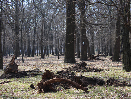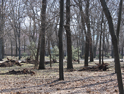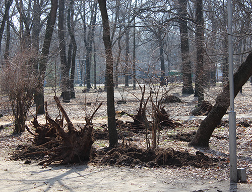 На данный момент пни выкорчевывают вдоль аллеи. Всего в парке, по информации директора КП Олега Обрезанова, насчитывается около 300 пеньков.