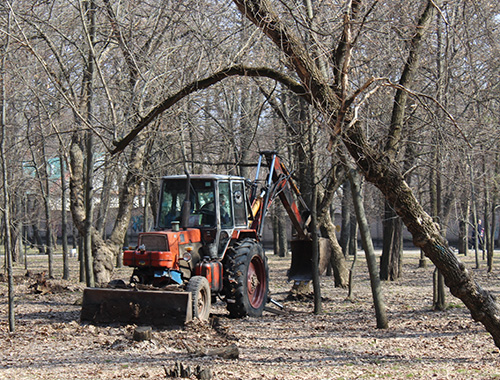 Свою технику в помощь парку предоставили КП "Водоканал" (трактор) и КП "Чистота" (дробилку). Также на балансе КП "Чистота" числится измельчитель пней, приобретенный в прошлом году. Конечно же, удобнее было бы использовать ее. Но как объясняет директор парка, сейчас машина занята, и по договоренности ее используют позднее для ликвидации более крупных пней, с которым не справится обычный трактор.