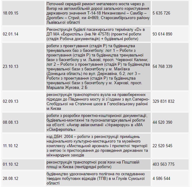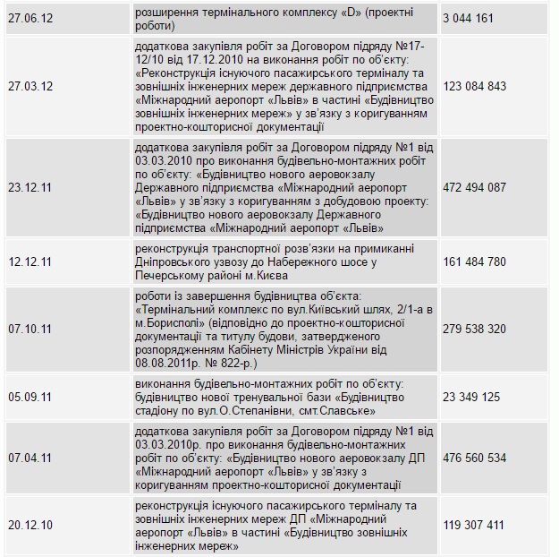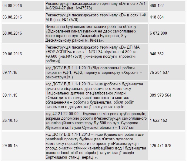 Последний выигранный тендер - разработка документации на реконструкцию аэродрома "Винница" за 0,95 миллионов гривен.