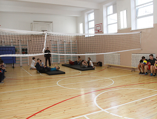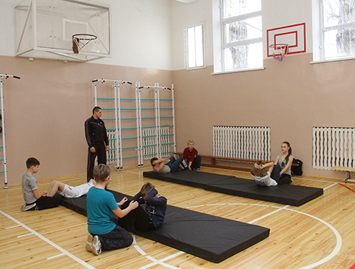 Во время визита чиновников в зале шли занятия. Городской голова Сергей Минько подошел к старшеклассникам, чтобы узнать, все ли им нравится и выслушать пожелания. Ребята рассказали, что хотелось бы получить еще футбольные ворота.