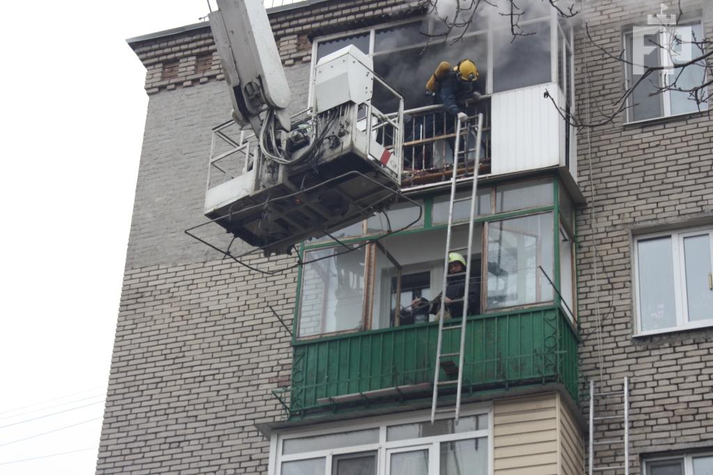 Прибыв на место вызова, пожарные увидели на пятом этаже людей, которые выбили стекла на балконе горящей квартиры и просят о помощи.