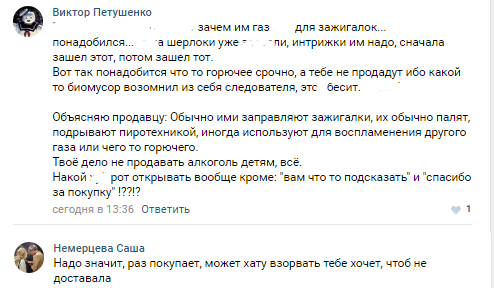 Большое спасибо, что вы не продали им балончики с газом. Спасибо за неравнодушие к окружающим!