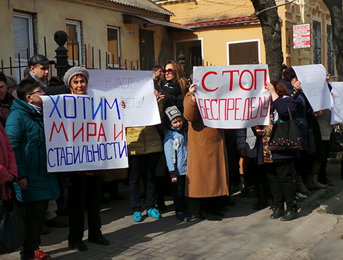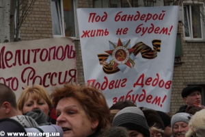 Впрочем, митинговали сторонники "Оппоблока" в этот раз за все и сразу. Они требовали: "Мира и стабильности", "Стоп беспределу", "Губернатора в отставку", "Восстановить законность в Мелитополе".