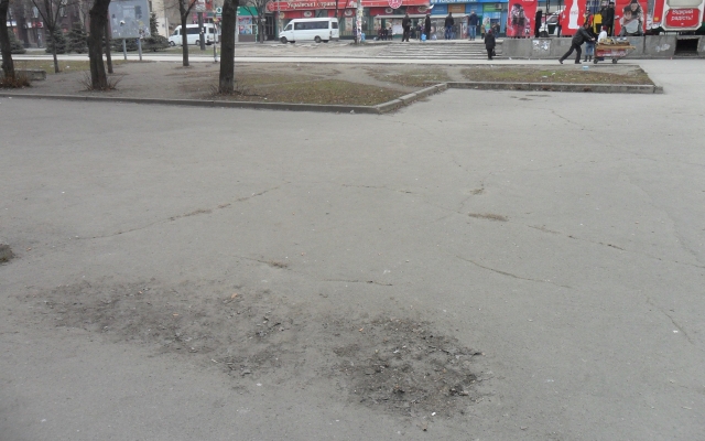 Здесь, в районе Анголенко, сейчас находится дорога и укатан асфальт. Однако запорожцы заметили, что после зимы асфальт странным образом "просел". И не просто "просел", а "просел" в форме гроба.