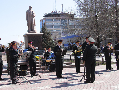 Фото и видео "МВ": Флэшмоб военного духового оркестра воинской части 3033 Национальной гвардии Украины в Мелитополе.