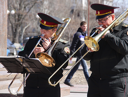 15 музыкантов военного духового оркестра, двое из которых - выпускники Мелитопольского училища культуры, порадовали мелитопольцев эстрадными произведениями, попурри украинских песен, маршами и даже музыкальными композициями всемирно известной группы "АББА". Кульминацией флэшмоба стал плац-концерт, где музыканты продемонстрировали не только виртуозное владение музыкальными инструментами, но и строевую подготовку, слаженно и четко перестраиваясь. Было здесь место даже юмору. Горожане, которые останавливались, чтобы послушать музыкантов, под конец концерта одарили их аплодисментами и криками "Браво! Молодцы!".