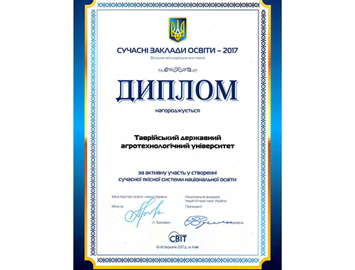 Таврический государственный агротехнологический университет завоевал три престижные награды международных выставок "Современные учреждения образования-2017" и "World Edu – 2017".