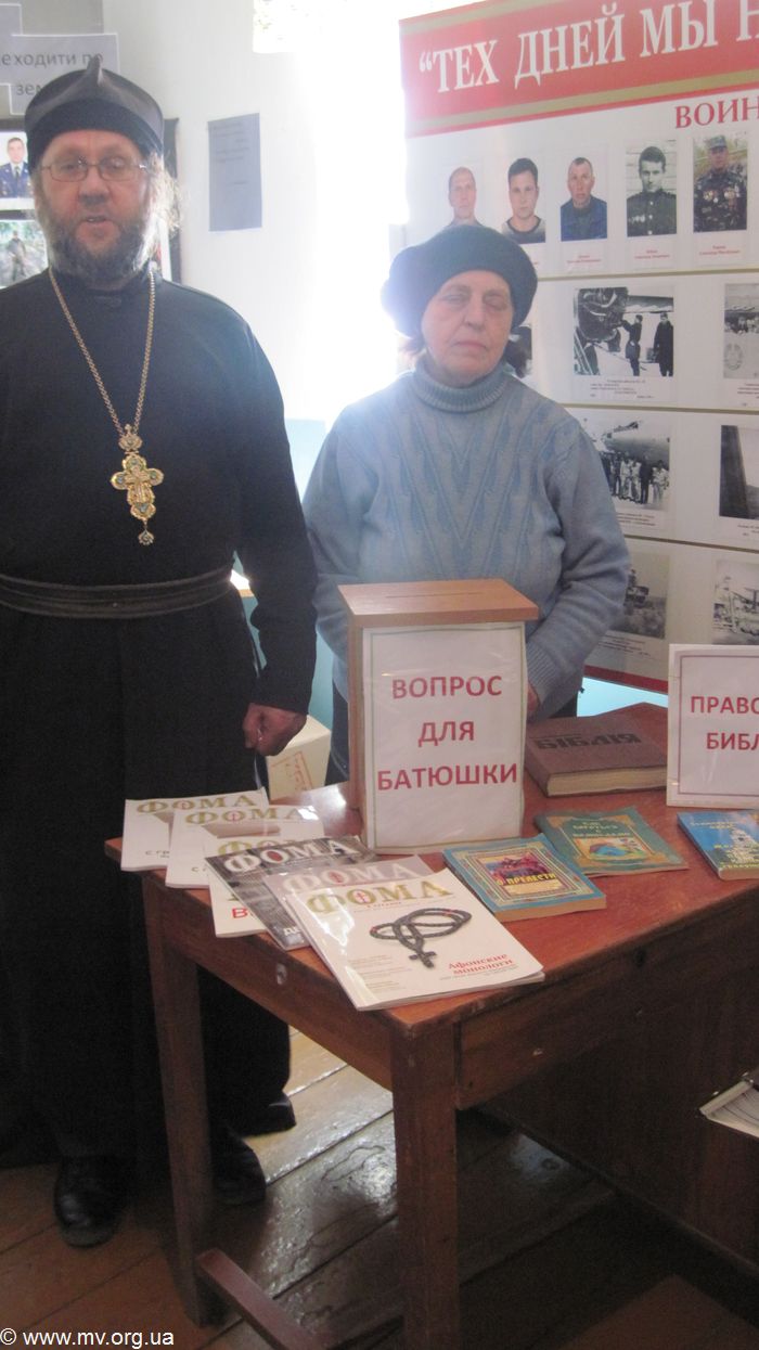 В ходе встречи был организован уголок православной библиотеки - 30 книг духовной литературы, подшивка журналов «Православные монастыри» и подборка журналов «Фома». Газета «Летопись православия» ежемесячно передается в библиотеку.
