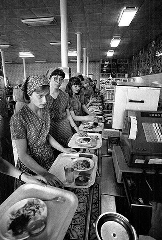 «Подносов вечно не хватало, и люди брали грязные с конвейера. Жирные, плохо вымытые алюминиевые вилки и ложки, ножей не было - не ресторан ведь! В качестве салфеток - нарезанная грубая оберточная бумага в граненых стаканах», - описывает «прелести» общепита запорожец Виктор Денисенко.