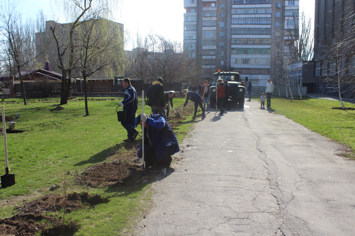 Сегодня прошел второй по счету субботник в рамках акции «Сделаем свой город лучше». В 09.00 начались работы в сквере возле здания «Укртелекома». Сотрудники этой организации вместе с воспитанниками дворца творчества, бойцами батальона коммунальщиками и чиновниками посадили 4 липы, 45 спирей и 105 кустов бирючины.