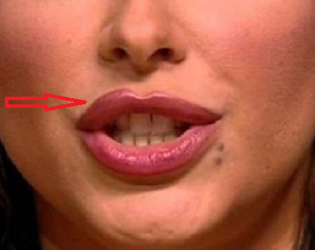 По неизвестным причинам у исполнительницы образовалась асимметрия губ. Особенно это заметно на верхней губе, одна половина которой значительно больше второй.