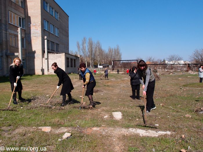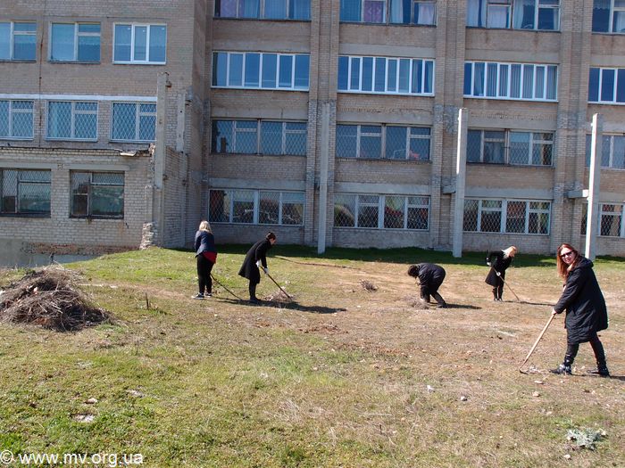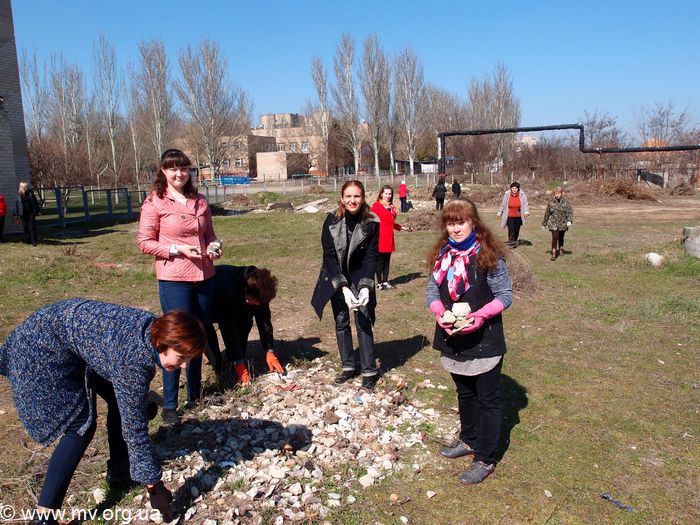 Педагоги и технические сотрудники мелитопольской ООШ № 4 активно включились в месячник санитарного благоустройства города, который стартовал 15 марта.