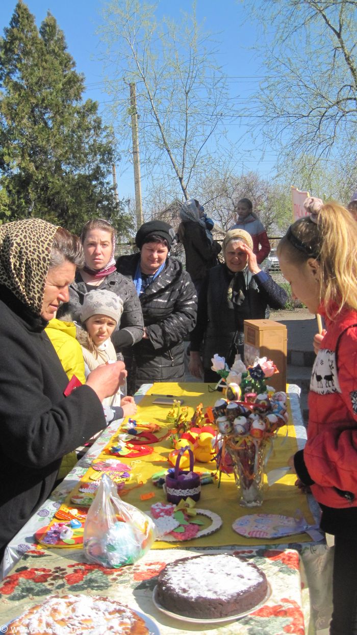 2 апреля во дворе храма в честь иконы Казанской Пресвятой Богородицы в с. Константиновка Мелитопольского районного благочиния состоялась «Пасхальная ярмарка» в помощь онкобольным детям, которая проходила в рамках акции «Любовь милосердствует». На ярмарке были представлены поделки, созданные руками учеников и преподавателей воскресной школы «Виноград» на уроках «Пасхальной мастерской» и постная выпечка, приготовленная кулинаром Татьяной Александровной.