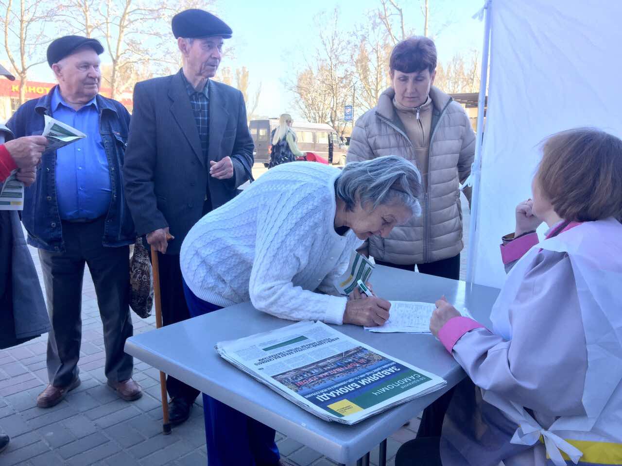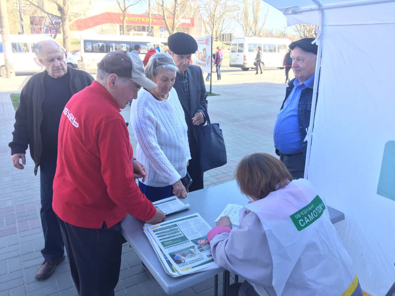 Во время проводимой акции, горожане могли пообщаться с представителями партии «Об`єднання Самопоміч», которые присутствовали во время сбора подписей, разъясняли мелитопольцам нюансы изменения тарифов на газ и позицию партии.