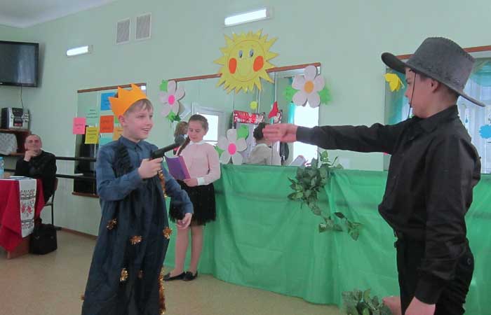 Встреча была посвящена презентации его книги "Сказка о королях". Общение проходило в теплой, дружеской атмосфере. Но не только Сергей Иванович выступал перед учениками, рассказывая о своем новом произведении. Школьники тоже порадовали писателя своими небольшими сюрпризами. Так, 3-классники подготовили инсценировку фрагмента из его сказки из новой книги "Король, разбойник и железная дорога". А ученица 4 класса Раиса Перелыгина и сама решила попробовать себя в роли писателя, но не простого. Девочка придумала и озвучила интересное продолжение сказки С. Авдеенко "Принцесса и пастух".