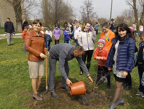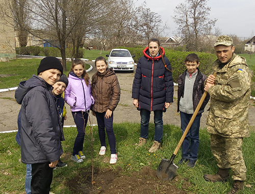 Мелитопольские АТО-шники и школьники садили деревья мира