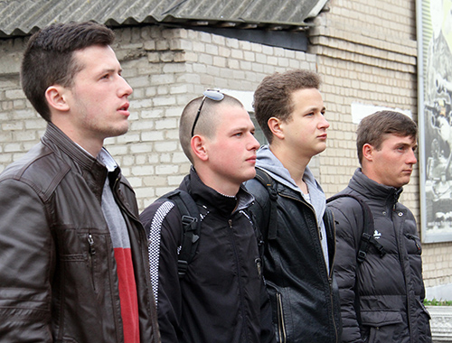 Семь утра. Во дворе военкомата журналисты, военнослужащие и четверо ребят. Обычные курточки, джинсы, небольшие рюкзаки. Военком Александр Лушников дает команду: шикуйсь!