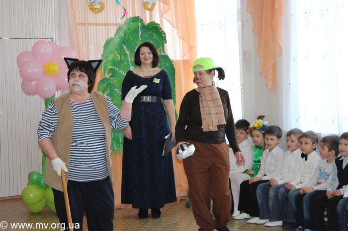 Когда все поздравления были завершены, вниманию присутствующих было показано небольшое представление о том, как маленькие воспитанники торт печь собирались и искали ингредиенты для него в деревне Простоквашино.