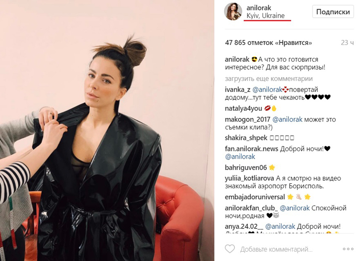 Об этом свидетельствует новый снимок в Instagram Лорак, на котором она указала геолокацию "Киев, Украина".
