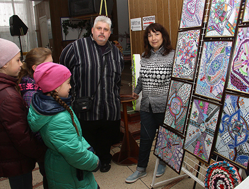 На одну картину уходит два дня, но главный расходный материал - ручки. Художник благодарит за помощь в их приобретении начальника отдела культуры Михаила Семикина, а за то, что вдохновила на выставку, - председателя общества инвалидов Альбину Демидову.