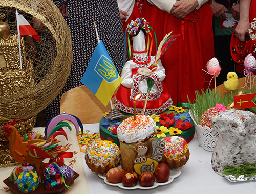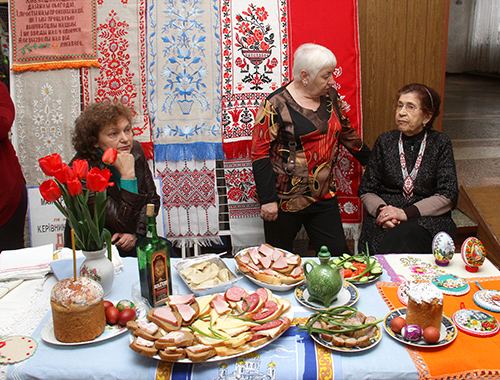 В холле главного городского ДК шумно, людно и очень вкусно пахнет. Здесь национальные общества Мелитополя презентуют свои обычаи празднования Пасхи. А какой же праздник без накрытого стола!
