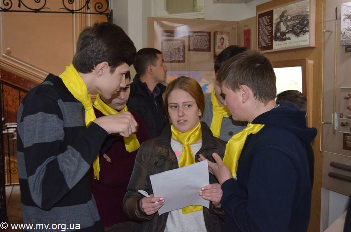 После этого, прежде чем приступить к заданиям, детей ознакомили с шуточным мультиком об истории создания Мелитополя. Мини-мульт школьникам понравился. Затем ребят разделили на две группы и развели по разным комнатам. Первых повели в комнату, где еще не закончили создавать новую экспозицию. Школьники приняли участие в ее создании, а также сыграли в игру на знание истории родного города "Наш край с XV в. до 1917 г.".