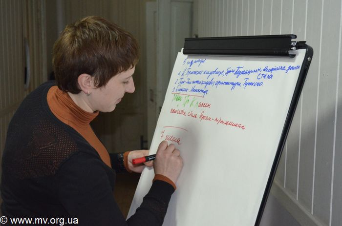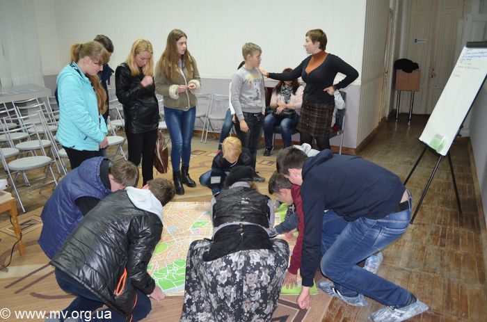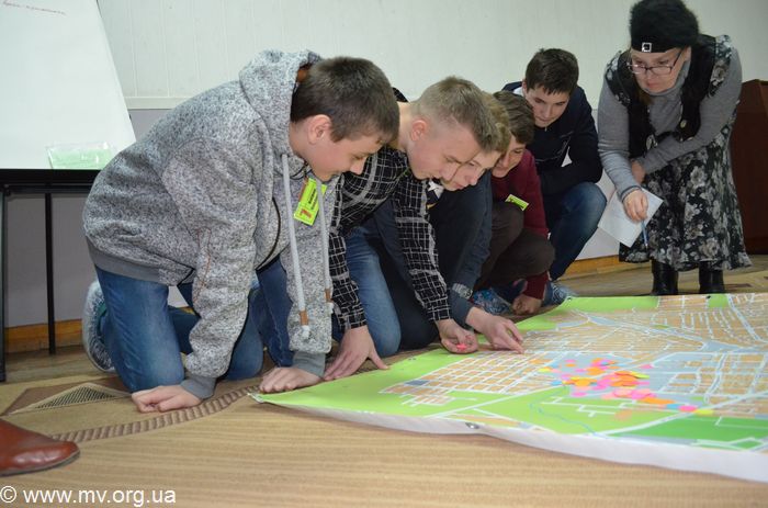 Тем временем вторая группа школьников вспоминала исторические и культурные памятники Мелитополя и обозначала их на большой карте. После этого группы поменялись видами деятельности.