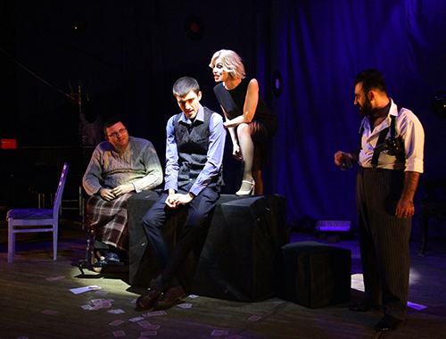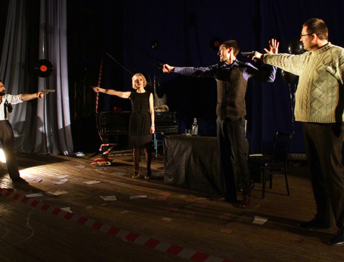 Необычную постановку, только для приглашенных зрителей, поставили актеры театральной студии «Артмур». Камерный спектакль прошел на сцене ДК им. Шевченко, при этом занавес был закрыт, а зрители находились непосредственно на сцене.