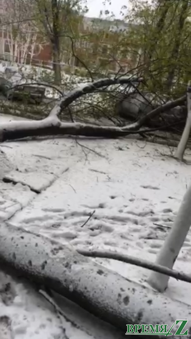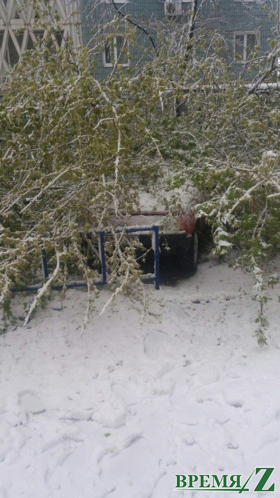 Как сообщают горожане, большое количество деревьев и веток упало на машины из-за налипания мокрого снега и порывов ветра. В некоторых случаях повреждения автомобилей фатальны.