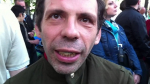 Да это местный убогий урод Равик с протекающей кастрюлей на голове. Не обращайте внимание как говорится в семье не без урода - равика