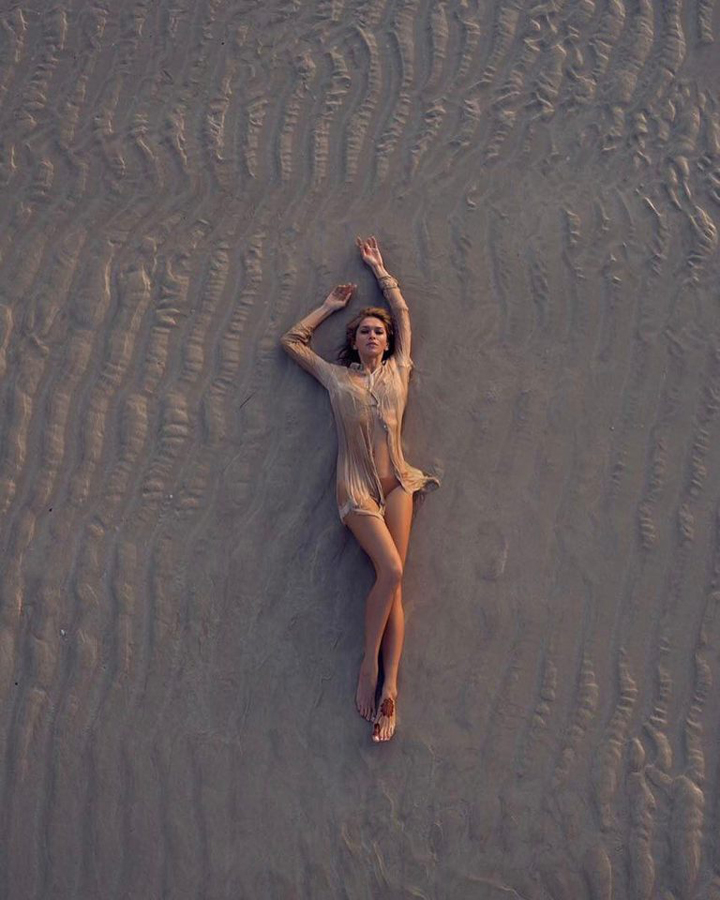Вера Брежнева в «невидимом» бикини загорает на пляже (фото)