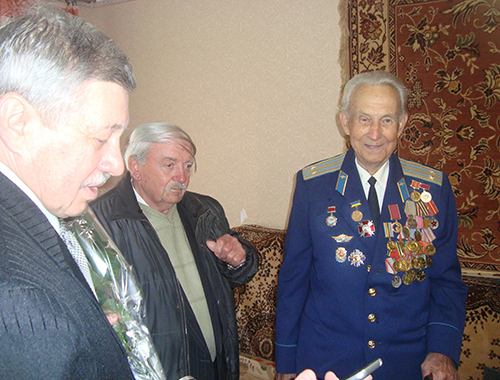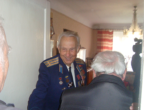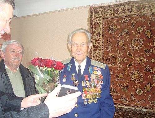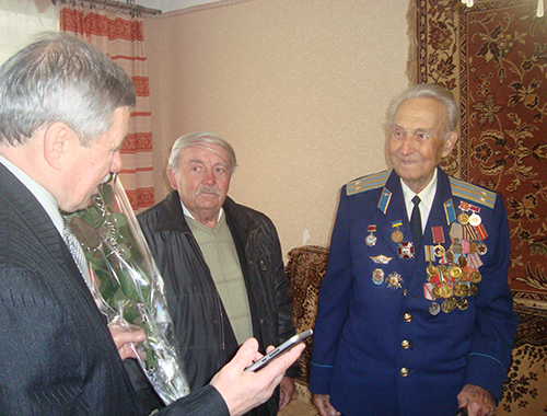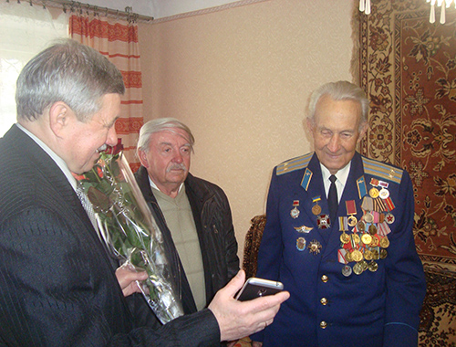 В квартиру юбиляра в авиагородке пришли председатель Совета ветеранов Мелитополя Евгений Бабенко, а также сослуживцы и друзья Леонида Шепелевича, причем пришли они не с пустыми руками – от имени мэра Сергея Минько ему зачитали поздравительную грамоту, а также вручили цветы, плед, пиццу, фрукты.