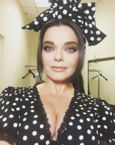 Наталья Королева выложила в сеть свою новую фотографию. На снимке артистка запечатлена в черном одеянии в белый горох. Откровенное декольте ее наряда подчеркивает пышный бюст исполнительницы. На голове у Натальи – повязка с бантом из такого же материала, как и ее платье, пишет Storinka