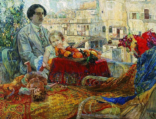 Исаак Бродский (1883–1939) родился в Бердянском уезде в еврейской семье землевладельца и торговца, но дело отца не продолжил — его привлекала живопись. Мастерство художника он постигал сначала в Одесском художественном училище, а затем в Петербурге, в Академии художеств у Ильи Репина. После учебы он отправился напитываться впечатлениями в Европу — именно во время этих поездок он и побывал на острове Капри. Там он познакомился с Максимом Горьким и проникся идеями революции.
