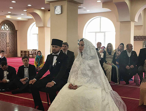 По фотографиям с бракосочетания, которые начали появляться в сети видно, что в Исламском центре присутствовало немного гостей, большинство из которых являются родственниками пары.