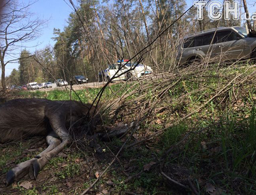 Узелков ехал в сторону Киева, когда на дорогу неожиданно выскочил лось. Животное попало под колеса внедорожника и погибло. В следствие ДТП была значительно повреждена передняя часть джипа, а также треснуло лобовое стекло, сообщает "ТСН".