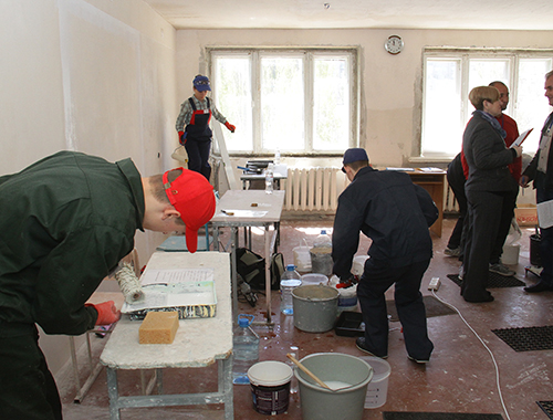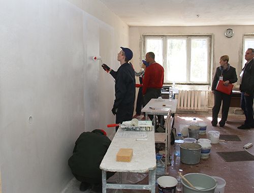 Вторая часть конкурса - практическая. Для ее осуществления конкурсантам выделена комната в общежитии стройцентра и материалы. За работой практически беспрерывно наблюдают два члена жюри, Константин Шовкопляс и Валерий Суббота. Кстати, они являются еще и потенциальными работодятелями. И работу оценят, и себе специалиста присмотрят. Как рассказывают мужчины, на сегодняшний день маляров катастрофически не хватает. Они ведь нужны не только для ремонта квартир, но и других зданий, помещений, предприятий. Люди этой профессии сегодня весьма востребованы. Но вот с набором студентов на данную специальность, рассказывают в стройцентре, ежегодно возникают проблемы. Молодежь почему-то считает, что профессия не нужна, не престижна, и не спешит поступать на эту специальность.