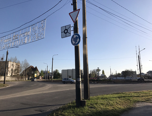 Кроме того, в связи с изменением в правилах дорожного движения на южном выезде из Мелитополя ( в районе круга с поклонным крестом), установлены два новых дорожных знака «Уступи дорогу» и «Круговое движение». Знак 4.3 разрешает движение только в том направлении, которое изображено на знаке, при этом первый поворот должен быть только направо, разворот запрещен. Знак 2.4 Водитель должен остановиться у перекрестка для того, чтобы уступить дорогу транспортным средствам, движущимся по главной дороге.