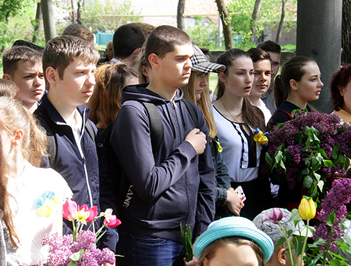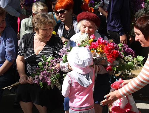 А дети буквально задарили присутствующих на митинге ветеранов букетами ароматной сирени и ярких тюльпанов.