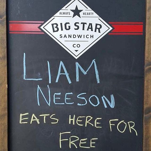 Мэтт Пруим, менеджер канадского кафе Big Star Sandwich Co, решил проделать популярный рекламный трюк, предложив британскому актеру Лиаму Нисону, бесплатные обеды. А он взял и пришел.