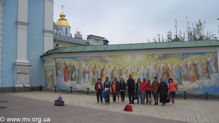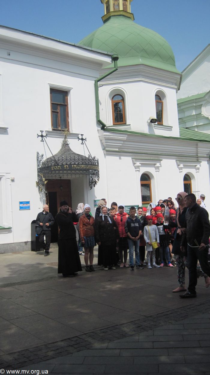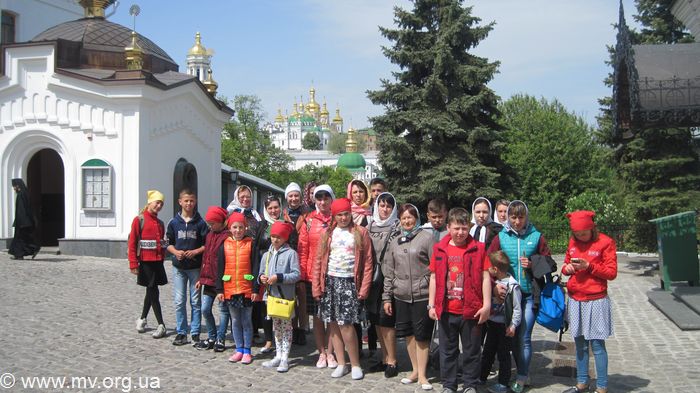 «Первый день паломничества начался с посещения Майдана Независимости и Михайловского Золотоверхого монастыря. Детей очень удивила всеукраинская выставка пысанок и стена со святыми возле Михайловского Золотоверхого собора. Затем юные паломники отправились в Голосееву пустынь, где была проведена экскурсия по монастырю иерадьяконом Никодимовым. Он рассказал историю становления пустыни, о старице Алипии и преподобном Алексии Голосеевском, провел экскурсию по храму в честь иконы «Живоносный источник» и подворью монастыря. Ребята поклонились в усыпальнице монахини Алипии и оставили свои записочки для нее. В этот же день паломники отправились в Китаеву пустынь в пригороде Киева. Знаете, после шума столицы пустынь встретила тишиной, хрустальным воздухом и пением лесных птиц, а ее двор украшают многолетние ели. В Китаевой пустыни хранятся мощи преподобных Феофила и Досифеи. Паломники поднялись по ступенькам к пещере преподобной Досифеи в лесу и посетили вечернее богослужения в храме во имя Собора Двенадцати Апостолов, приложились к святым мощам.