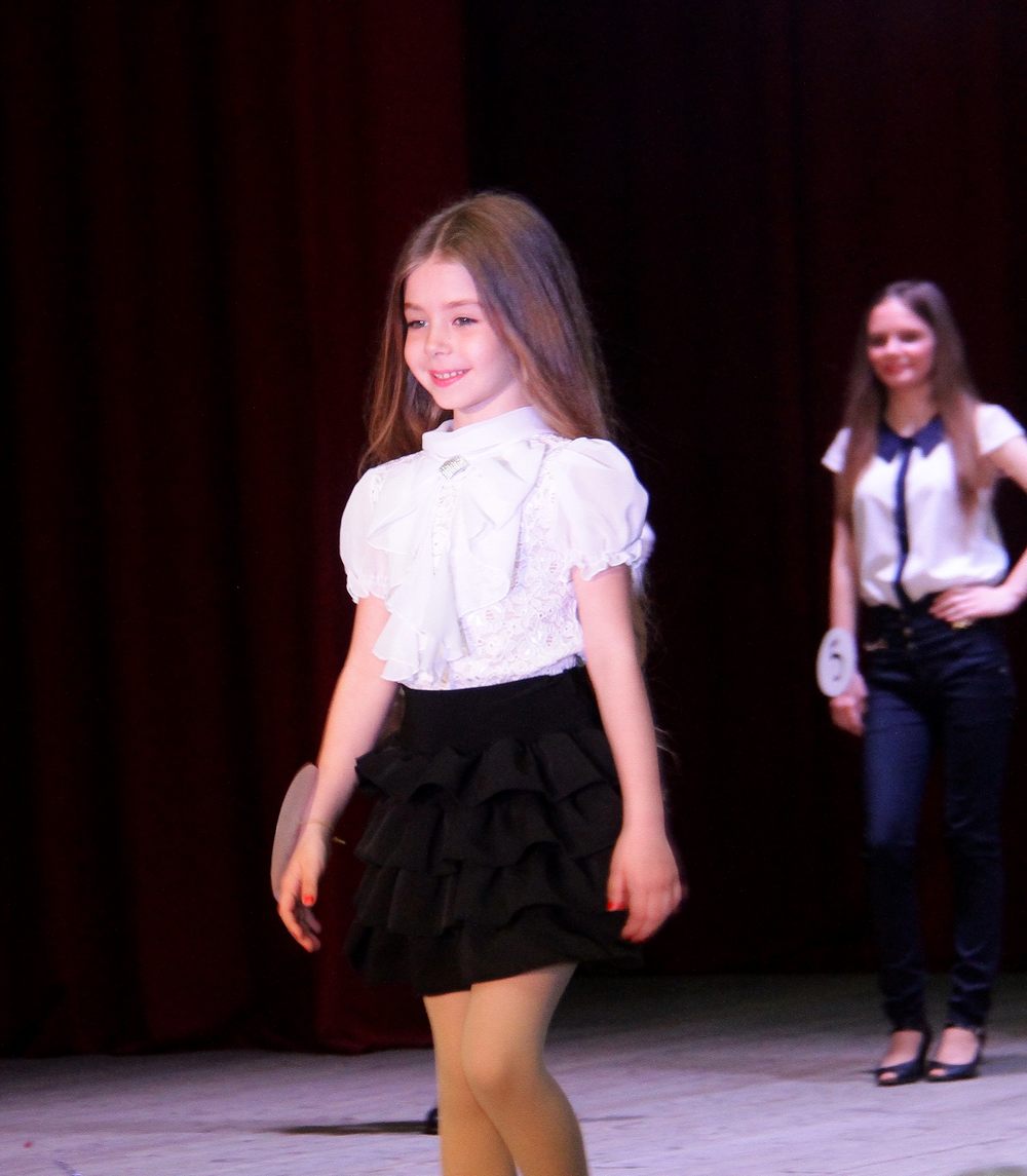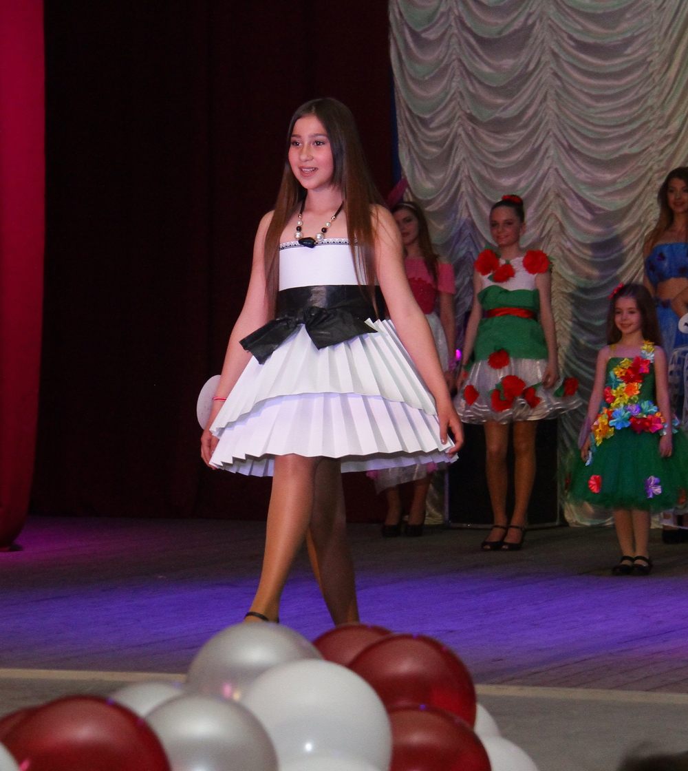 12 очаровательных девочек и девушек претендовали на звание лучшей модели-2017 в своих возрастных категориях. Самой юной моделью "Мисс Бриллиантс", которая покорила зрительный зал, была шестилетняя Ева Мусий, уверенно шагали по подиуму, установленному в зале, 10-летняя Полина Новикова, Карина Шевченко и Мария Чиркова, которым 11 лет, срывали зрительские аплодисменты 12-летняя Юлия Лесникова, 13-летние Мария Кочкарева и Екатерина Прокопович, 14-летние модели Анастасия Бражина, Варвара Трегубова и Руслана Бредихина, Дарья Симоненкова и Анастасия Деревесникова, которым исполнилось 15 лет. Конкурсантки приняли участие в настоящем марафоне красоты, представ перед жюри и зрителями в трех конкурсных выходах: в черно-белой, строгой и добавляющей девчонкам лет деловой коллекции; в задорной и веселой джинсовой коллекции и в поражающей воображение авангардной одежде - костюмах, сделанных своими руками из подручных материалов. Конечно же, нужно отдать должное не только участницам, представившим неординарные наряды, но и их мамам и бабушкам, которые изготовили такие сногсшибательные платья, топики и юбки. В ход пошли игральные карты, мусорные пакеты, оберточная бумага, мешковина, ленты, ватман. И это отнюдь не смотрелось смешно и простенько, наряды были по фигуре, к лицу, создавали образ и настроение.