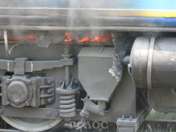 В субботу, 6 мая, на Запорожской детской железной дороге во время движения внезапно загорелся тепловоз.