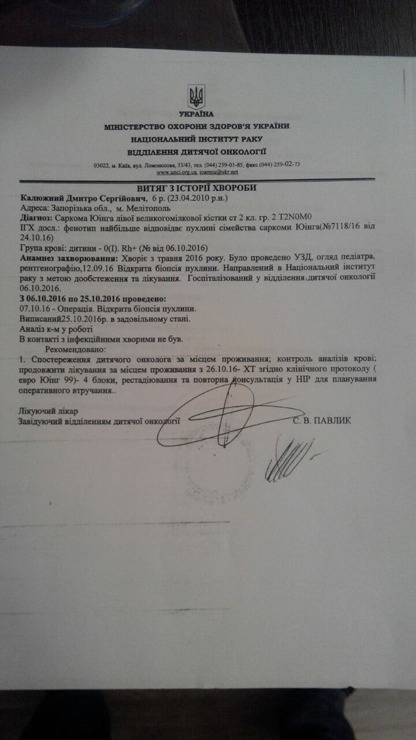 Маленький мелитополец Дима Калюжный хочет поскорее выздороветь и вернуться домой