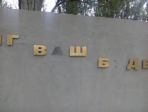Сегодня ночью неизвестные отбили несколько букв с надписи «Подвиг ваш будет жить в веках», на мемориале Братское кладбище, что на ул. Героев Крут (Пионерской).