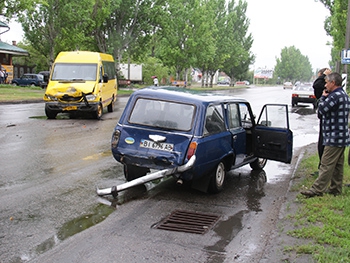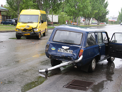 В Мелитополе микроавтобус "догнал" ВАЗ