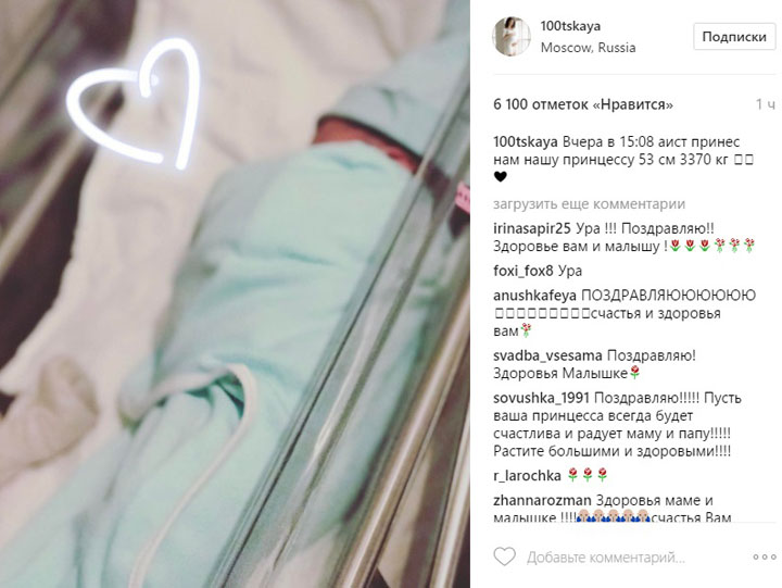 Ее подписчики тут же принялись поздравлять Анастасию с пополнением в семье и желать ей и ее дочке здоровья.