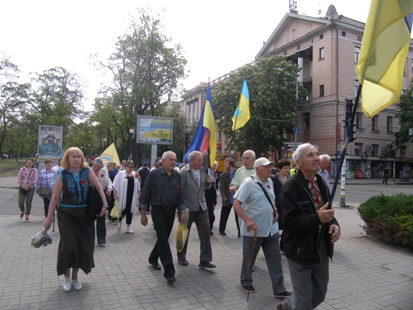 Впереди колонны несли плакат с надписью "Діди воювали".
