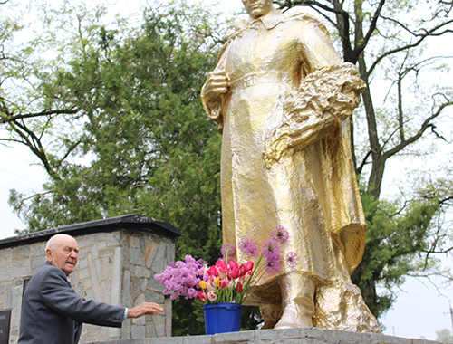 Но было на этом митинге и нечто, что вполне можно назвать новым – это то, как люди разных возрастов говорят теперь о войне. Выступил, например, на митинге председатель Семеновского сельсовета Андрей Ермоленко и заговорил словами «единый советский народ», «дружба народов» и т.п. Если слушать его с закрытыми глазами, чтобы не видеть украинских военных, с двуцветным национальным знаменем застывших у братской могилы, то возникает ощущение 30-летней давности, когда разваливающийся СССР пытался спасти рассыпающуюся империю многократным повторением фраз «Дружба народов помогла победить фашизм». В таком же духе выступила от имени Союза ветеранов и Татьяна Иванова – бесконечные фразы о «советском народе», «единении на фронте и в тылу всех советских граждан».