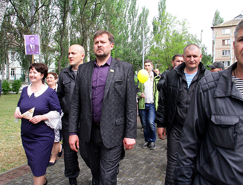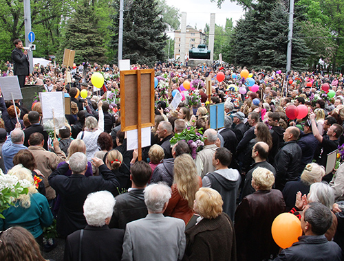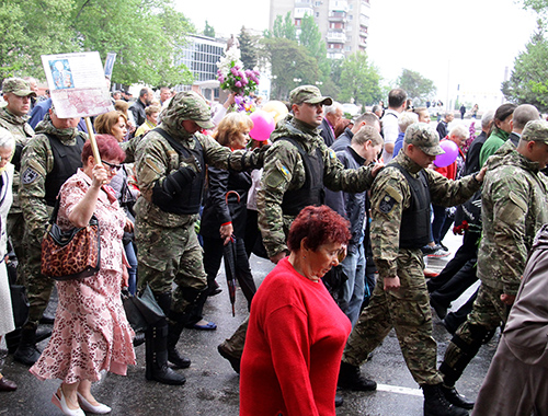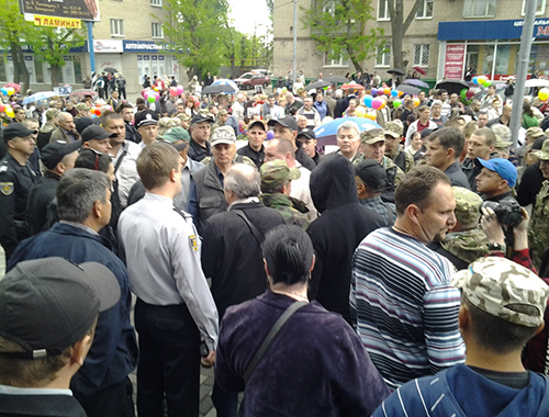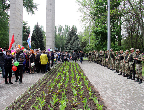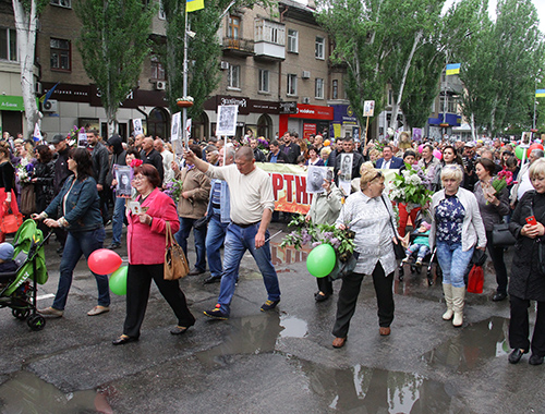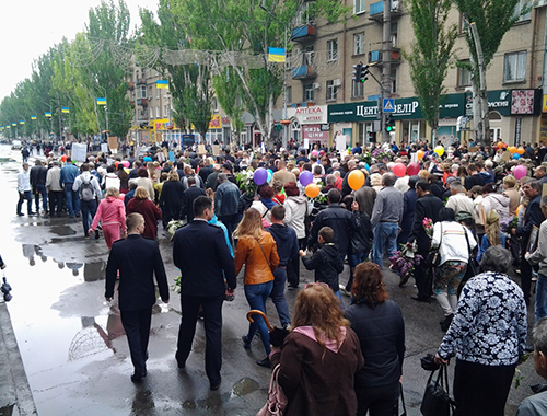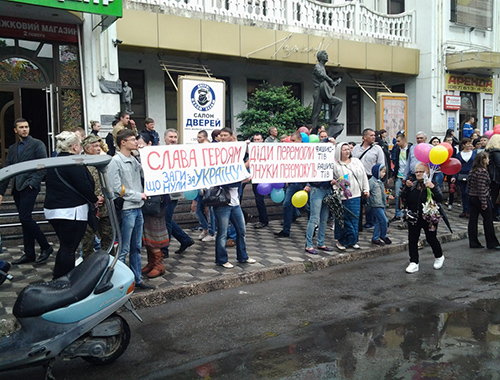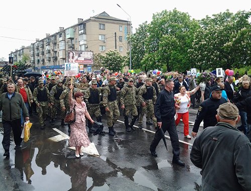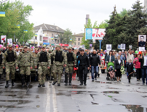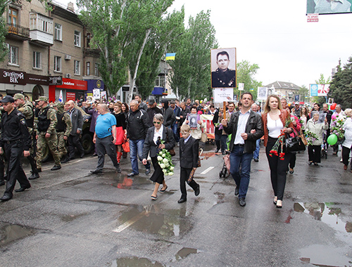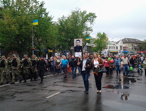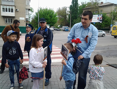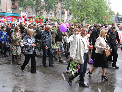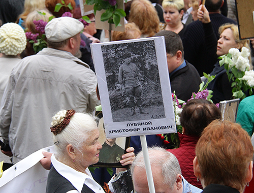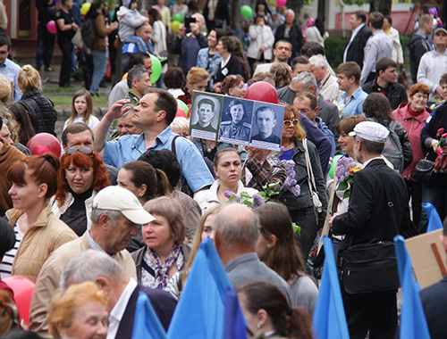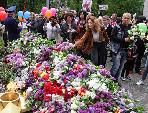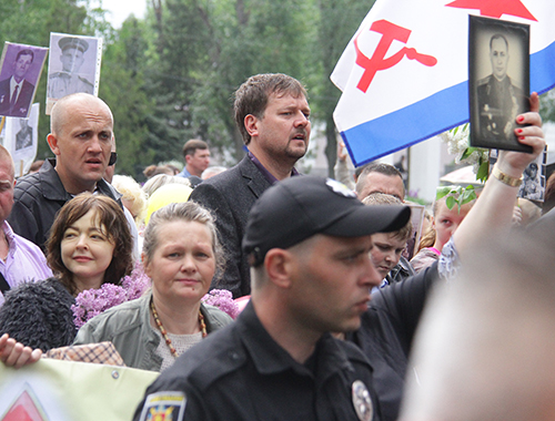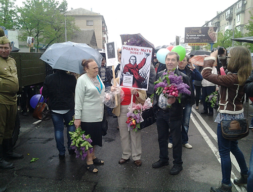 На место сбора участников шествия "Бессмертный полк", организацией которого активно занималась антимайдановка Екатерина Уманец, а поддерживали акцию сторонники нардепа Евгения Балицкого, люди стали подходить к 9.00.